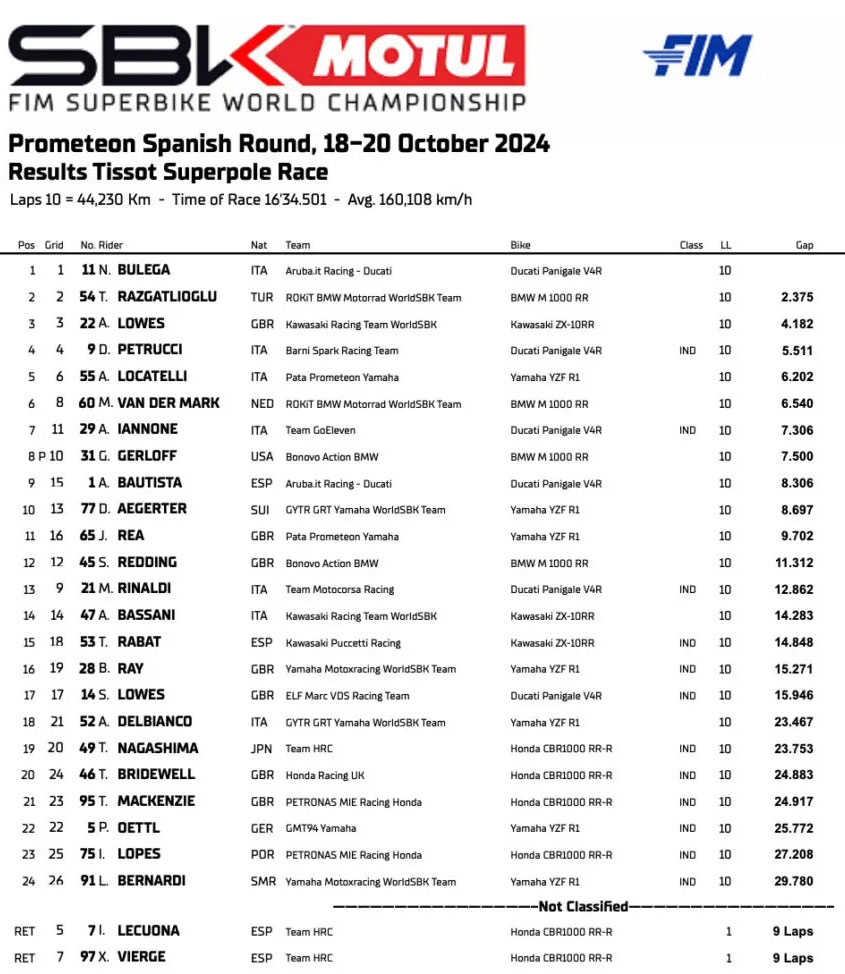 WSBK Jerez Superbike Course Superpole : Nicolo Bulega impérial, Toprak Razgatlioglu en poursuite