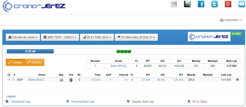 A 10 heures ce matin, le Live Timing était bien au rendez-vous pour ce premier roulage d’importance de la saison Superbike 2021 qui doit se dérouler pendant deux jours à Jerez de façon ininterrompue jusqu’à 18 heures.