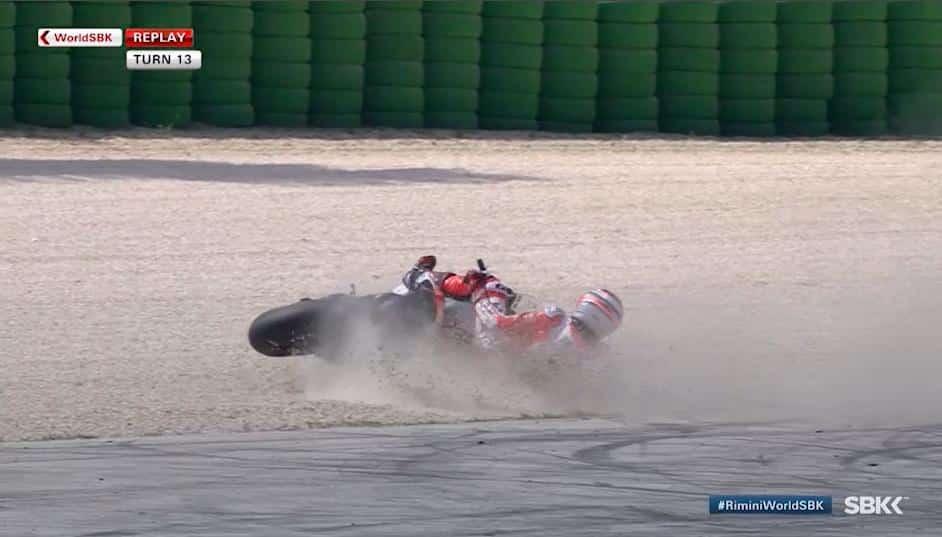 Un matériel qu’a découvert Pirro. Et le pilote attribue ses deux chutes et ses modestes performances en course aux pièces japonaises : « je ne sentais pas la moto, il était impossible de piloter » s’est plaint Pirro. « Je ne pouvais pas sentir le pneu avant. En lâchent les freins, je n’avais aucune sensation. Je teste pour Ducati, et la machine d’usine est en Öhlins ».