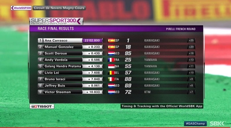 WSBK, Magny-Cours, SSP300 : Ana Carrasco victorieuse, Manuel González Champion du Monde