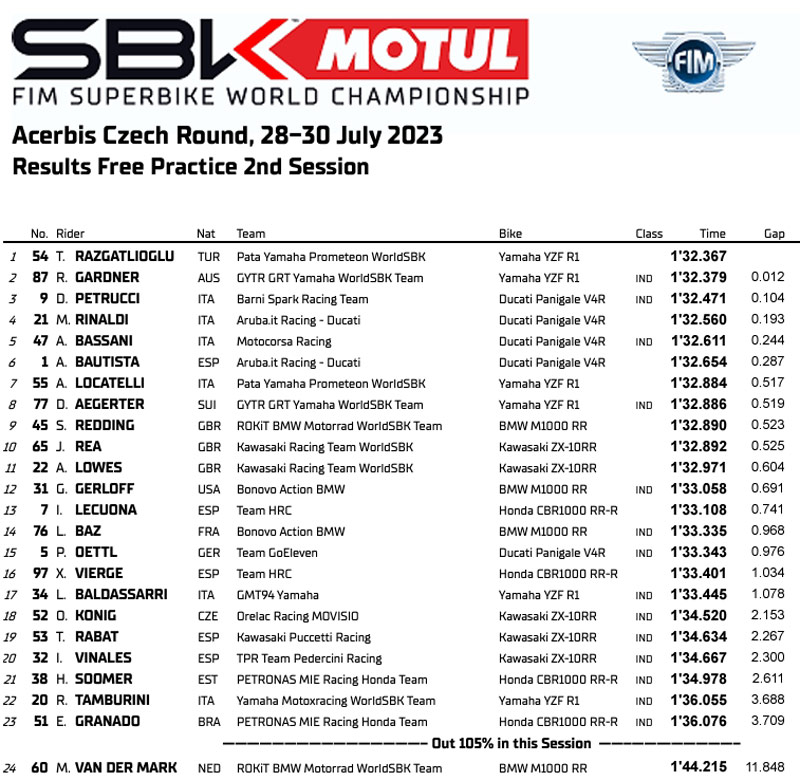Résultats de la FP2 des Superbike à Most :