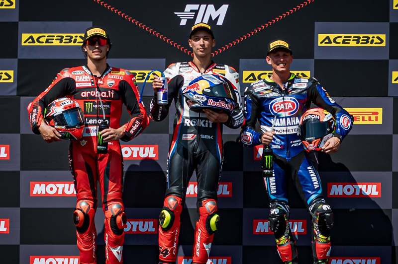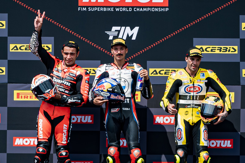Le pilote BMW a bien exploité l’adhérence offerte par le pneu arrière SC0, alloué spécifiquement pour cette manche au lieu du SCQ, pour remporter la Superpole Race, sa cinquantième victoire en WorldSBK. Il a ensuite complété le « hat trick » en remportant également la Course 2, grâce à des choix de pneus identiques à ceux de la Course 1 de la veille, à savoir le SC1 standard à l’avant et la nouvelle solution de développement SC1 en spécification D0286 à l’arrière, qui s’est avérée être une meilleure solution que le SC1 standard pour affronter les trahisons du circuit de Most.
