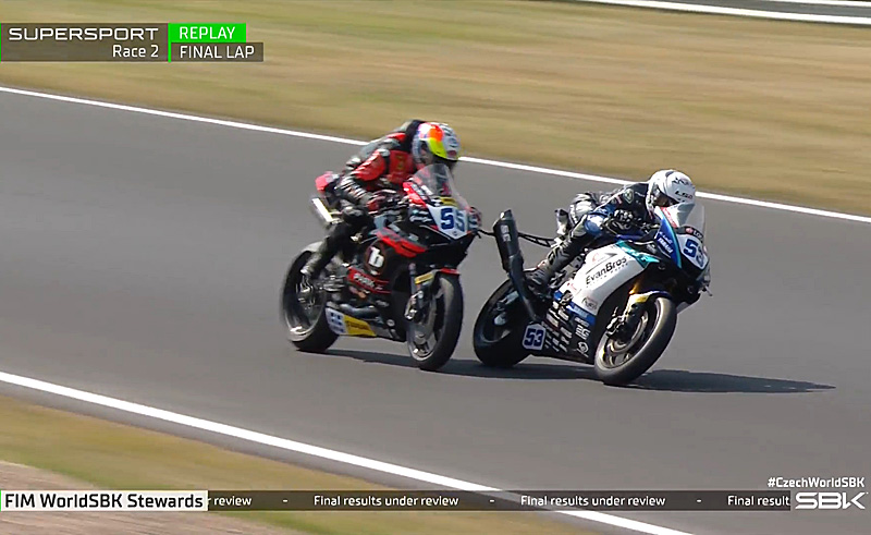 Comme hier mais dans un genre différent, la deuxième course du Championnat du monde Supersport WorldSBK sur l’Autodrome de Most a été l’objet d’un suspens jusqu’à la ligne d’arrivée, et même après…