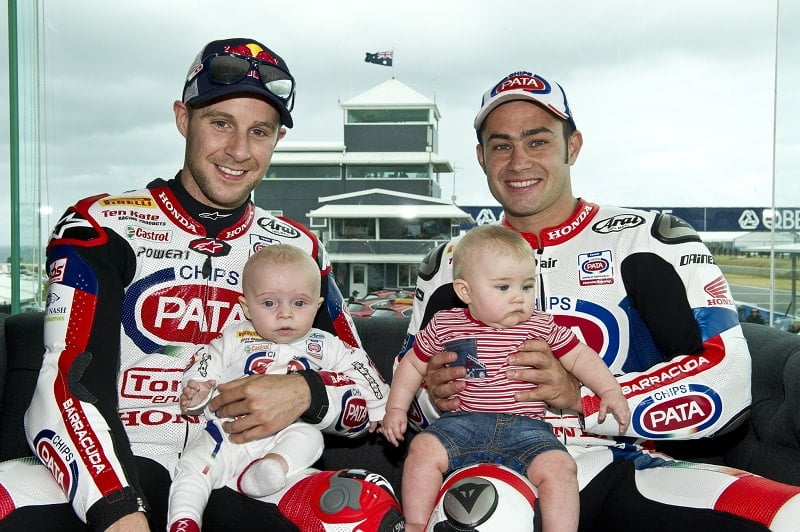 Jonathan Rea et Leon Haslam en 2014 avec leurs fils