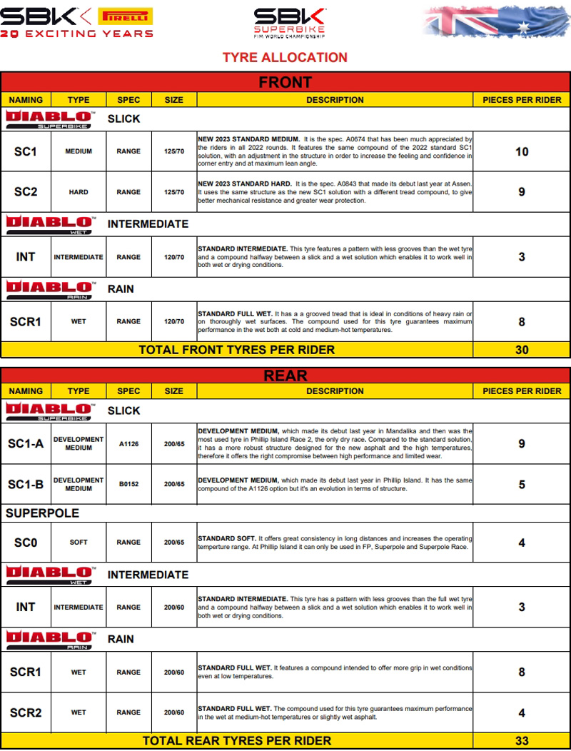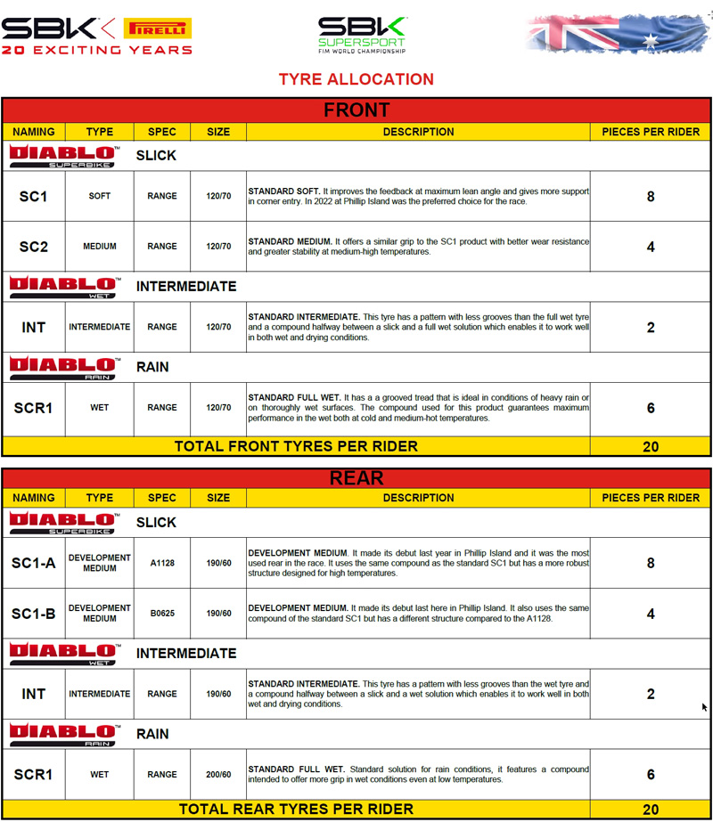 Pour la première manche du Championnat du Monde FIM Superbike 2023, qui aura lieu ce weekend à Phillip Island, en Australie, Pirelli a décidé de confirmer les mêmes solutions que celles utilisées lors des tests, dominés dans les deux catégories par les pilotes Ducati.