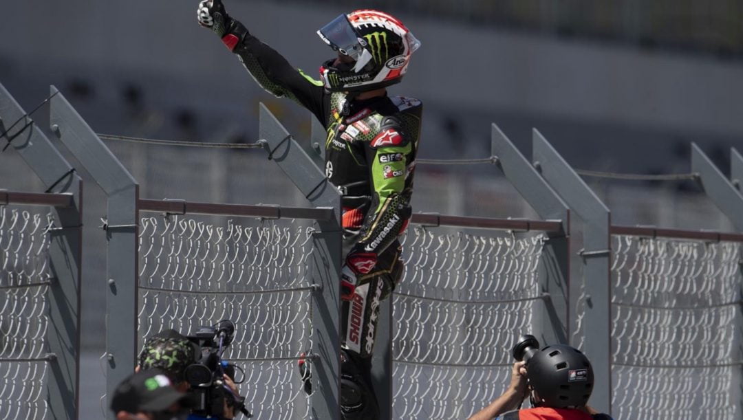 Après que Rea se soit échappé, Scott Redding a eu la difficile tâche de couvrir ses arrières. Loris Baz et Alex Lowes l’ont aidé involontairement en finissant dans les graviers. Michael van der Mark, en revanche, est resté sur ses talons et a même réussi à le devancer pendant quelques virages, jusqu’à ce qu’il se retrouve au large suite à une perte d’adhérence. Il restait quelques tours à faire, mais le Néerlandais n’a plus essayé : Redding était hors de portée, même avec le pneu avant cuit…