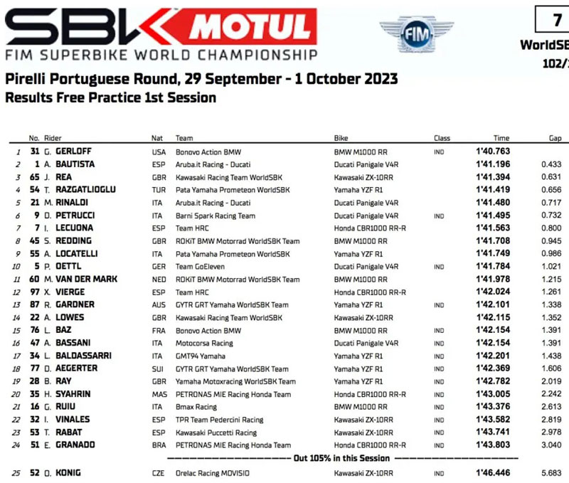 Good work from Garrett Gerloff on the BMW as he takes P1 👏 #PRTWorldSBK 🇵🇹 pic.twitter.com/UNOpqIZkxi