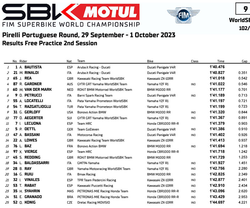 Pour remporter la deuxième couronne Superbike à un mois de l’échéance, il devra gagner quinze points sur Toprak Razgatlioglu. Un triplé sur les spéciales de Portimao est dans la ligne de mire d’un Alvaro Bautista auteur de deux séances fantasmagoriques sur les collines de Portimao. Quand l’Espagnol roule avec cette autorité, c’est mission impossible pour tout le monde. Le missile Ducati fait le reste, mais cela ne semble pas être une simple question de technique, mais plutôt d’impulsion.