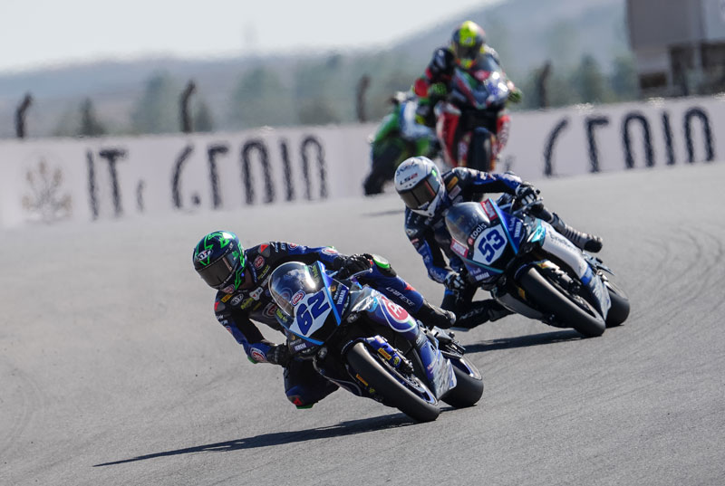 Avant même la fin du premier tour, Adrian Huertas récupère la deuxième position et se lance à l’attaque de Yari Montella qui possède 7/10 d’avance. Derrière ce trio de Ducati, Stefano Manzi fait ce qu’il peut, tout comme Can Öncü maintenant dans son sillage, mais possède déjà une seconde de retard. Derrière ces deux poursuivants, (Evan Bros. WorldSSP Yamaha Team) passe le 3 cylindre MV Agusta de Federico Caricasulo (Motozoo ME AIR Racing) et récupère la sixième position,