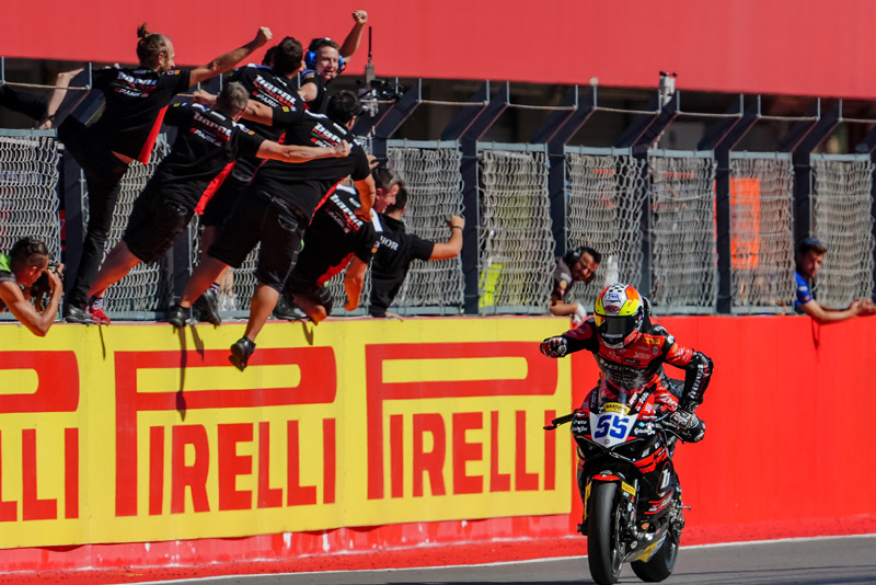 C’est donc en solitaire que Yari Montella franchi la ligne d’arrivée, se permettant même de la passer avec les jambes en l’air et un index pointé vers son team. Non, la guerre Ducati-Yamaha n’a pas eu lieu, même si deux Panigale V2 se sont pris les pieds dans le tapis… Au théâtre, une nouvelle représentation commence toujours par trois coups, pas deux !