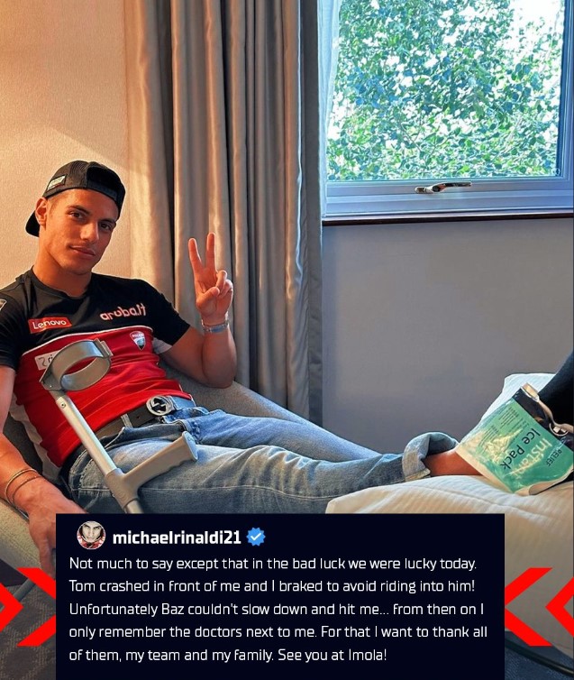 La source mentionne que le test de Bulega a été programmé sur deux jours, qui plus est en bonne compagnie puisque Michele Pirro et Enea Bastianini sont aussi sur site.  Pendant ce temps, Rinaldi se remet de son accrochage du début de la Course 2 en Angleterre, au cours duquel il a été impliqué avec les pilotes BMW Loris Baz et Tom Sykes.