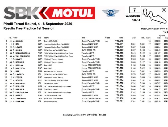 Le deuxième week-end en Aragón commence bien pour Michael Rinaldi, en tête devant tout le monde. Jonathan Rea, cependant, est très rapide alors que les officiels de Ducati sont en retard.