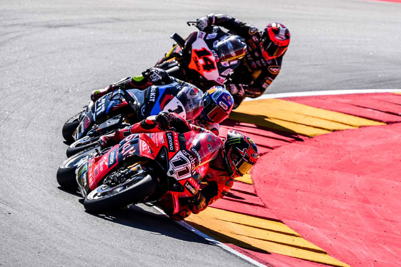 Parti de la pole position, Nicolò Bulega (Aruba.it Racing – Ducati) a pris les commandes dans le premier virage avant qu’un contact avec Toprak Razgatlioglu ne permette au pilote turc de passer en tête. Le pilote BMW s’est montré solide dans la première moitié du tour, mais très vulnérable dans le dernier secteur. La vitesse de Bulega dans les dernières courbes lui a permis d’attaquer plusieurs fois pour reprendre le commandement au freinage du virage 1. Tour après tour, les deux hommes se sont rendus coup pour coup, jusqu’à la ligne d’arrivée où l’écart n’était que de 0’’030.