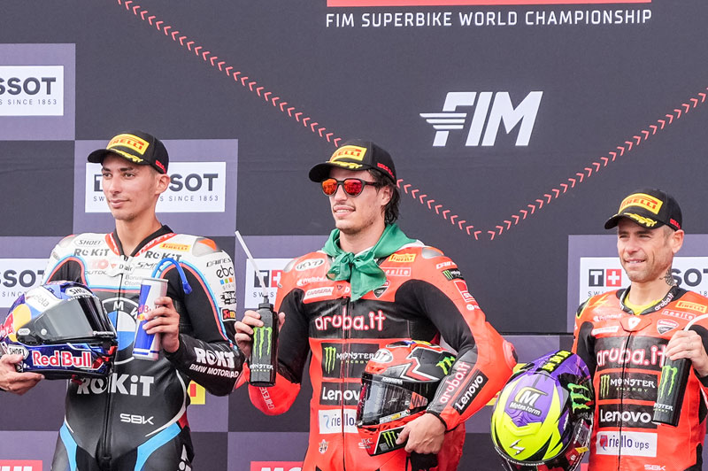 Alvaro Bautista (Aruba.it Racing – Ducati) est tombé à la sixième position au départ. Au 4ᵉ tour, il était déjà troisième. Une fois dans le vide, son rythme était rapide et régulier, mais il avait perdu trop de temps face aux leaders et a terminé à 1,7 s de Razgatlioglu.