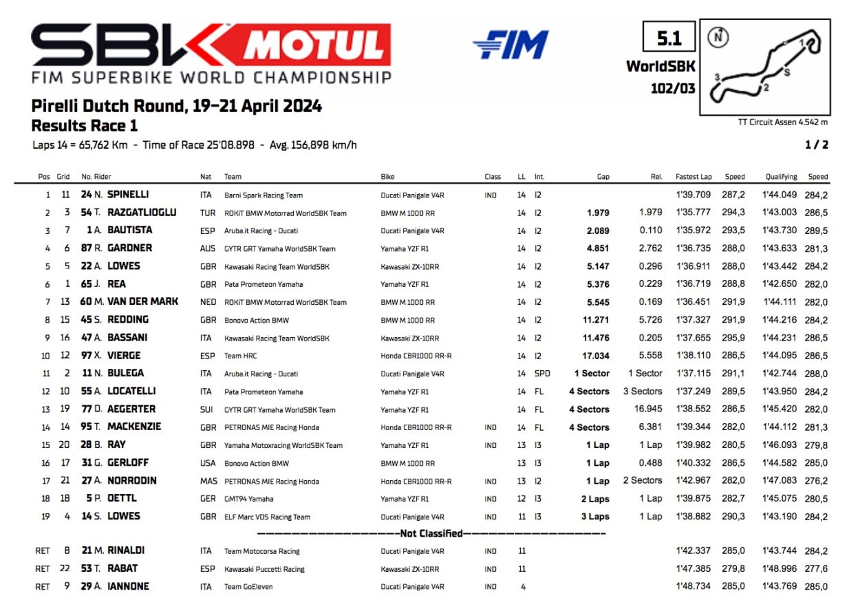 Résultat de la course 1 des Superbike à Assen :