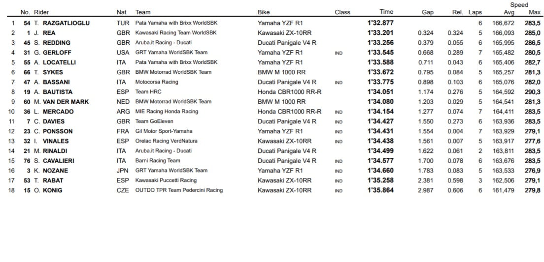 Crédit classement : WorldSBK.com