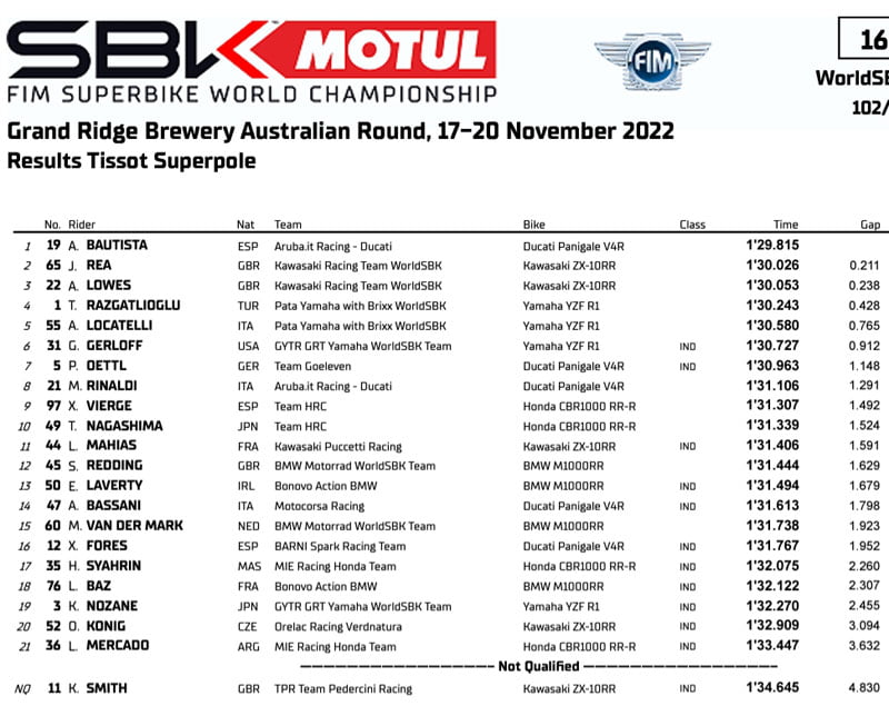 — WorldSBK (@WorldSBK) November 19, 2022
