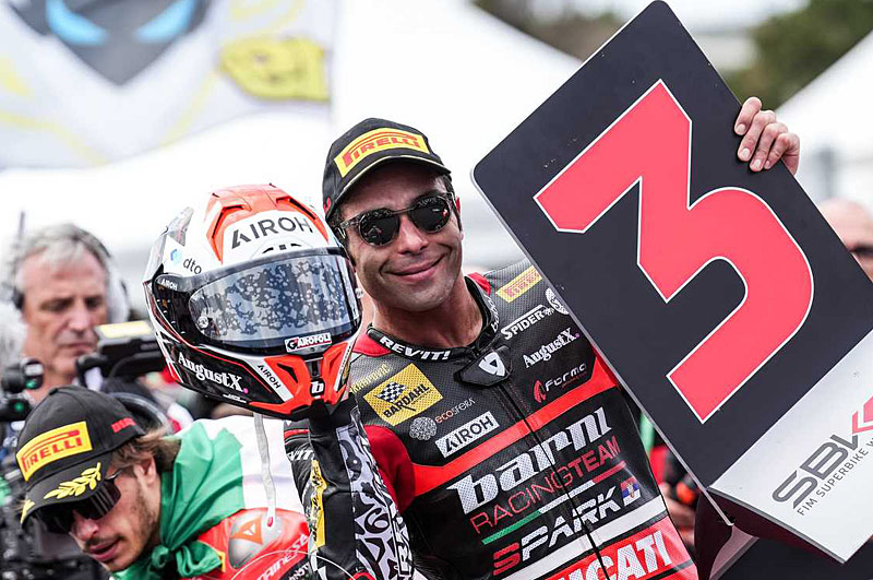 Danilo Petrucci s’est confié au site officiel WorldSBK.com : « En fin de compte, ce fut un bon dimanche. Oui, l’objectif de monter au moins une fois sur le podium a été atteint. Alors oui, je suis content parce que par rapport aux performances de l’année dernière, nous nous sommes améliorés. Je dois dire que j’aurais aimé être un peu plus rapide dans l’après-midi, mais j’attendais la deuxième partie de la course et j’ai eu un contact avec Toprak : j’ai perdu quelques positions et quelques secondes. Ensuite, je n’ai pas été en mesure de récupérer cet écart avec les autres gars du podium. J’étais toujours là, mais le rythme était plus ou moins le même.