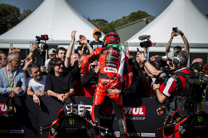 Au total, ce ne sont donc pas moins de 12 séances, dont 3 courses, que le pilote Aruba.it Racing – Ducati a dominé, parfois en solitaire comme lors de la course-1, parfois en devant lutter comme dans la course Superpole de ce matin. A ce niveau, on peut véritablement parler de grand chelem, une expression qui comprend quatre tournois en tennis, mais on peut aussi se demander qui sera en mesure d’entraver la marche triomphale de l’Italien, en cherchant à priori les candidats parmi les troupes de Borgo Panigale, la BoP (Balance of Performance) paraissant nettement moins équilibrée en Superbike qu’en Supersport, au bénéfice de Ducati…