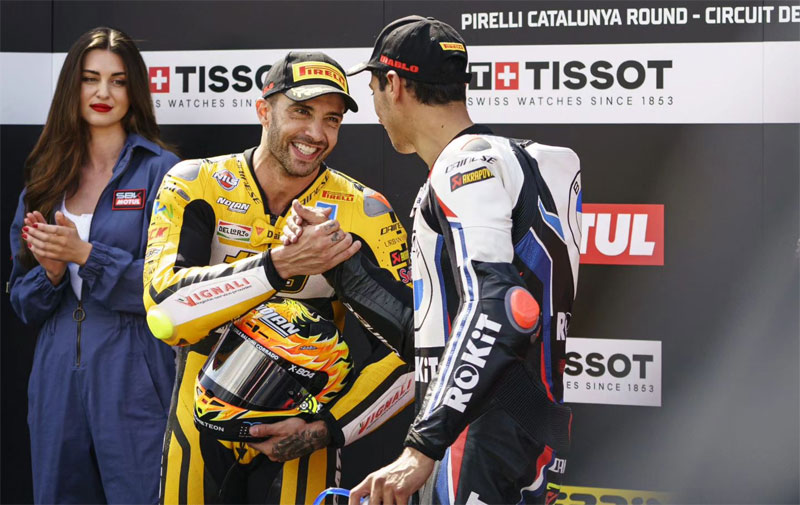 Le week-end d’Andrea Iannone en Catalogne s’est terminé par une chute lors de la Course 2 qui laisse beaucoup de regrets au pilote et à l’équipe Go Eleven. Il occupait confortablement la quatrième place et aurait probablement réussi à la conserver jusqu’au bout, mais il a glissé et a dû abandonner. C’est vraiment dommage, car il s’est également montré très compétitif à Barcelone : quatrième de la Course 1 et deuxième de la Superpole Race. Il continue de prouver sa valeur après une interdiction de quatre ans qui l’a empêché de courir.