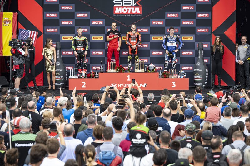 Álvaro Bautista (Aruba.it Racing – Ducati) : « Je suis très très heureux de cette victoire. C’était génial de gagner devant tant de fans, mes amis et ma famille. C’est toujours un sentiment spécial. Cependant, ce n’était pas une victoire facile. La clé de la course était les pneus. C’est pourquoi j’ai essayé de ne pas pousser à la limite dans les premiers tours, malgré le fait que Toprak attaquait avec conviction. Demain, dans la course Superpole, je n’aurai pas à me soucier de la gestion des pneus. »
