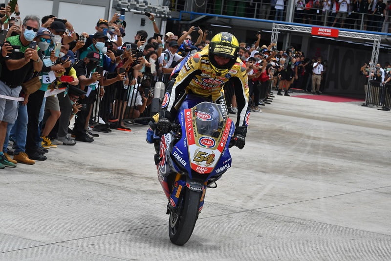 Chez les constructeurs, Yamaha rafle le titre assez facilement en ayant remporté 22 des 23 courses disputées en 2021. La seule épreuve ayant échappé à la marque d’Iwata est en fait la Course 1 remportée par De Rosa à Mandalika samedi, l’Italien évoluant sur Kawasaki.