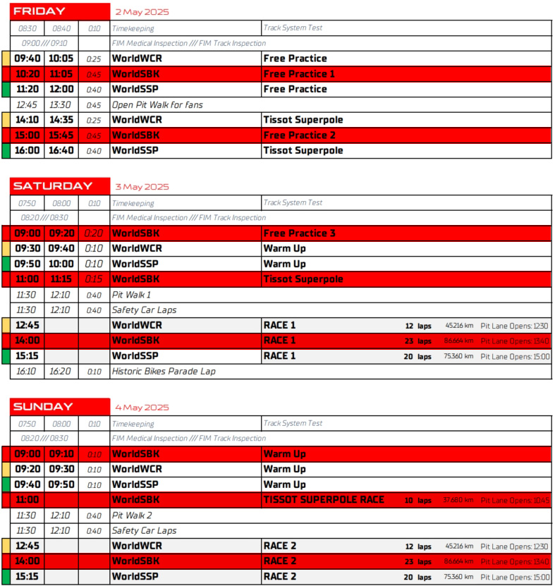 Andrea Locatelli (Yamaha), fraîchement vainqueur à Assen et seul pilote à marquer des points dans toutes les courses cette saison, pourrait continuer à jouer les trouble-fêtes, alors que Jonathan Rea (Yamaha), absent depuis ses fractures au pied lors des tests en Australie, vise un retour à Crémone sous réserve de passer un examen médical jeudi. Son retour pourrait dynamiser l’équipe Pata Yamaha, bien que son niveau de forme reste incertain.