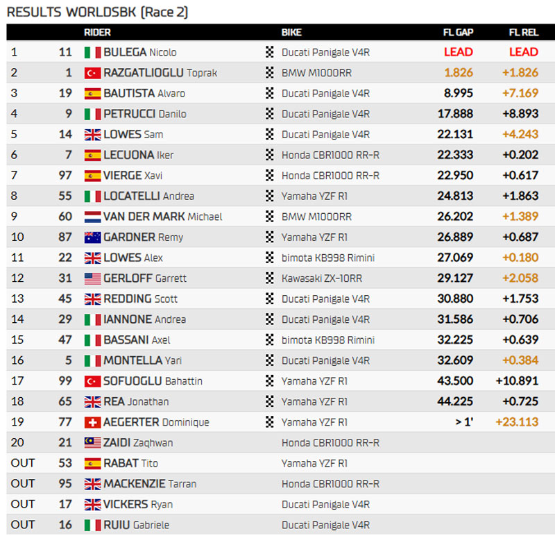 Résultats de la Course-2 des WorldSBK Superbike à Cremona :