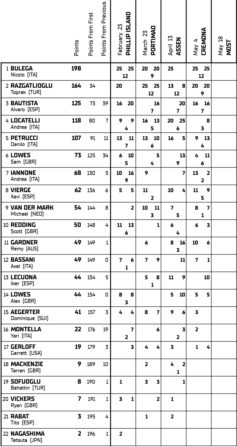 Nicolo Bulega augmente son avance au championnat à 34 points de Toprak Razgatlioglu.