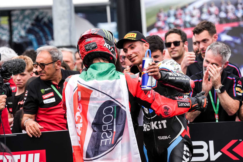 Nicolo Bulega a mené depuis la pole position au départ, avant que Toprak Razgatlioglu (ROKiT BMW Motorrad WorldSBK Team) n’attaque dans le dernier virage. Le pilote turc a mené les quatre premiers tours du circuit de Crémone, long de 3,768 km, avant que Bulega ne réponde. Bulega a été mis sous pression par Razgatlioglu pendant une grande partie de la course, mais l’écart s’est creusé pour atteindre un peu moins de deux secondes à la fin des 23 tours.