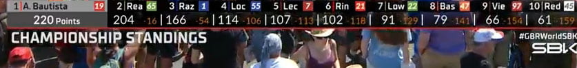 Au final, Scott Redding a bien tenu son rôle lors des deux runs ainsi effectués, reléguant le leader du championnat Álvaro Bautista (Aruba.it Racing – Ducati) en 5e position mais ne pouvant empêcher le héros local Alex Lowes (Kawasaki Racing Team WorldSBK) et Toprak Razgatlioğlu (Pata Yamaha with Brixx WorldSBK) de le surpasser. A l’inverse, Loris Baz, parti à la faute après un tour sans marquer de chrono, s’élancera 13e.