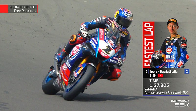 BOOM! @toprak_tr54 puts @PataYamahaBRIXX on top with a 1'27.8 🔥#GBRWorldSBK 🇬🇧 pic.twitter.com/LkMNlNqdLM