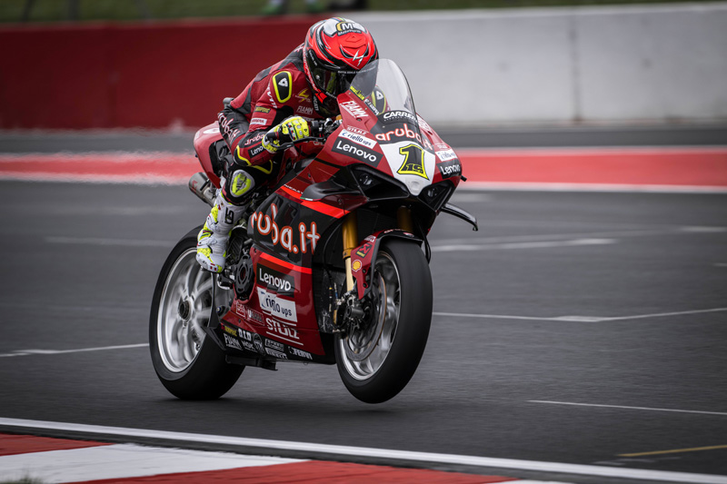 Dans ces conditions difficiles, le leader du championnat du monde a réalisé le meilleur temps de la troisième séance, se rapprochant de Jonathan Rea en la tête du classement général, grâce au chrono de vendredi matin. Le temps de 1’27.636 réalisé par Alvaro Bautista est cependant loin des références qui pourraient être réalisées sur le nouvel asphalte, dans des conditions d’adhérence idéales. Ainsi, même la FP3 n’a pas fourni d’indications sans équivoque concernant la durée de vie des pneus, en supposant que la course 1 de cet après-midi commence dans des conditions totalement sèches. Pirelli, après les problèmes de durabilité apparus lors de la manche britannique du Superbike, a opté pour la prudence. Il est probable que le choix le plus fiable, pour la course de 23 tours, sera le SC0 (medium), mais il sera intéressant de voir si Álvaro Bautista restera avec l’habituel SCX-A, le B800 avec lequel il s’est battu dans les courses précédentes. En tout cas, le nouveau défi face à Rea et l’habituel Toprak, 86 points de retard au championnat du monde, promet du spectacle.