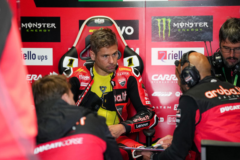 La journée a été difficile pour le duo Aruba.it Racing – Ducati composé de Nicolo Bulega et Alvaro Bautista qui ont terminé la journée avec les troisième et sixième temps. Bautista a chuté à Redgate tandis que son coéquipier est sorti de la piste à deux reprises.