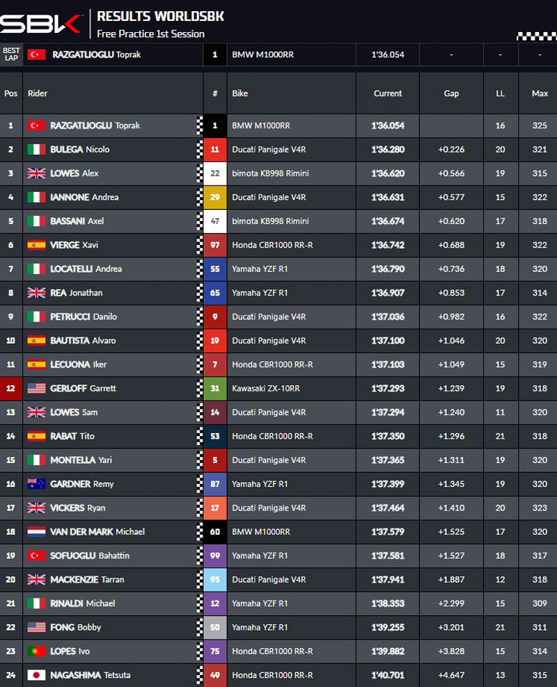 With none of riders on the truly fast lap, @topfragrls tops the time sheet👏🆙#EstorilWorldSBK 🇵🇹 pic.twitter.com/I7VuQM5idj