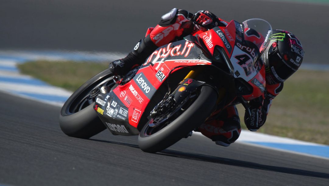 Le pilote britannique a fait la différence parmi les Ducati, un peu avantagé par le fait de connaître une piste qu’il parcourt depuis quelques années en tant que pilote MotoGP. Lors de sa dernière sortie avec la Panigale, Chaz Davies s’est classé septième, sept dixièmes derrière son coéquipier. Le vendredi de Michael Rinaldi n’a pas été très brillant, en tenant compte qu’il vient d’être annoncé comme remplaçant de Chaz sur la Ducati 2021 d’Aruba.it : Treizième temps seulement, à une seconde de son coéquipier.