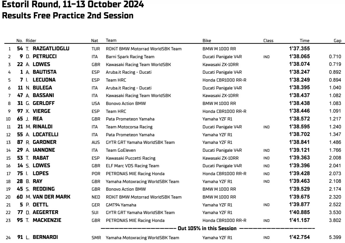 » Ce matin, les conditions étaient vraiment difficiles car il y avait pas mal de pluie et des températures froides. Les sensations n’étaient pas trop mauvaises pour moi et c’est seulement la deuxième fois que je pilote cette moto sur le mouillé, donc nous n’avons pas encore de réglages parfaits. Nous continuons à travailler pour améliorer mes sensations sur la moto. En fin de compte, ce n’était pas mal, mais pas parfait non plus. Je pense que Toprak est à un autre niveau en ce moment, mais nous voulons nous améliorer et nous rapprocher. En regardant les temps au tour d’aujourd’hui, je pense qu’un top 5 est possible, mais je veux absolument revenir sur le podium après l’avoir raté à Aragon. »