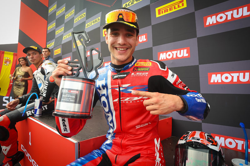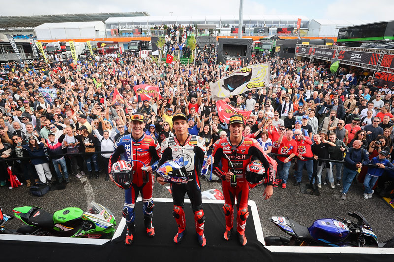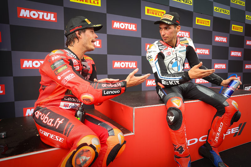 Parti de la deuxième ligne, Nicolo Bulega a chuté jusqu’à la septième place, bousculé en début de course par Jonathan Rea. Cela s’est avéré coûteux, mais le prétendant au titre est progressivement revenu dans la course. À la mi-course, il s’est emparé de la deuxième position en profitant d’une chute d’Alvaro Bautista. La seconde moitié de la course a consisté à gérer l’écart avec ses poursuivants
