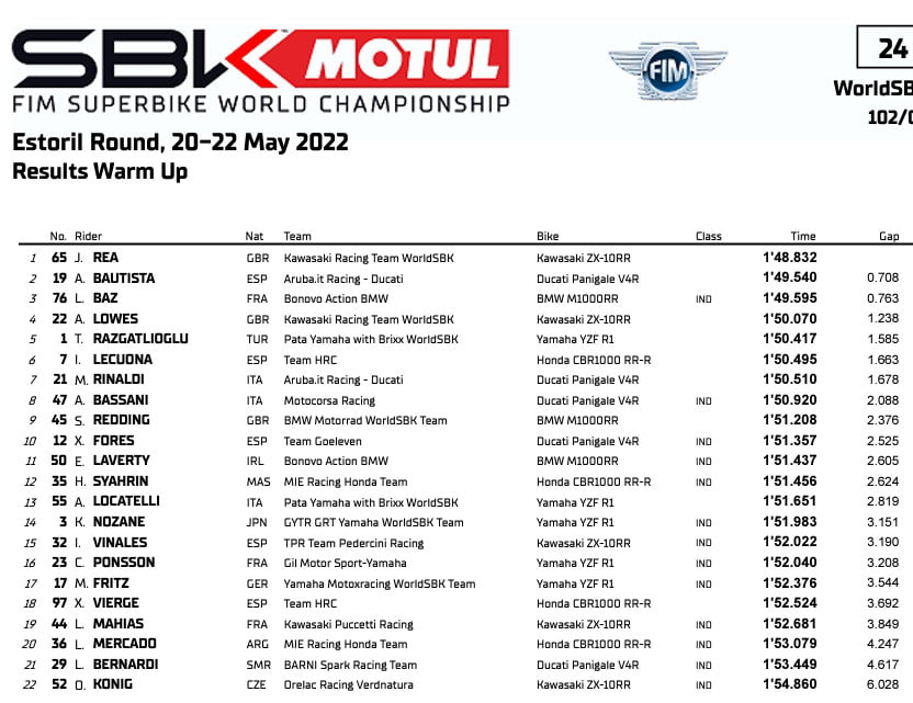 Derrière, on trouve un Loris Baz toujours aussi habile dans ces conditions précaires, alors que Toprak Razgatlioğlu, 4e, a fait preuve de prudence et est monté progressivement en puissance tout au long de la session.