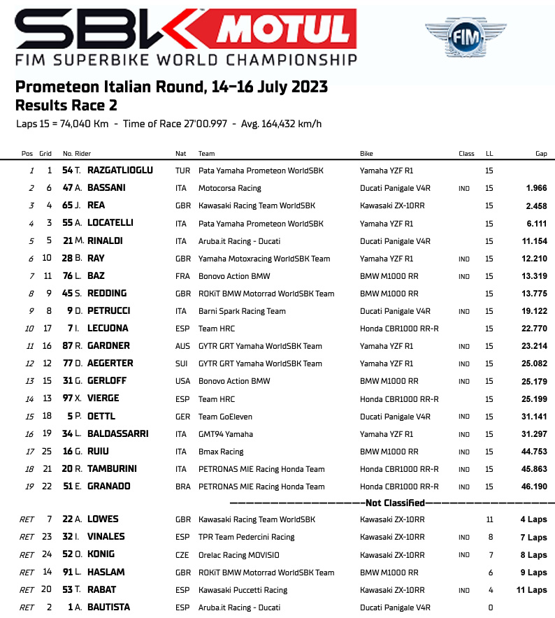 — WorldSBK (@WorldSBK) July 16, 2023