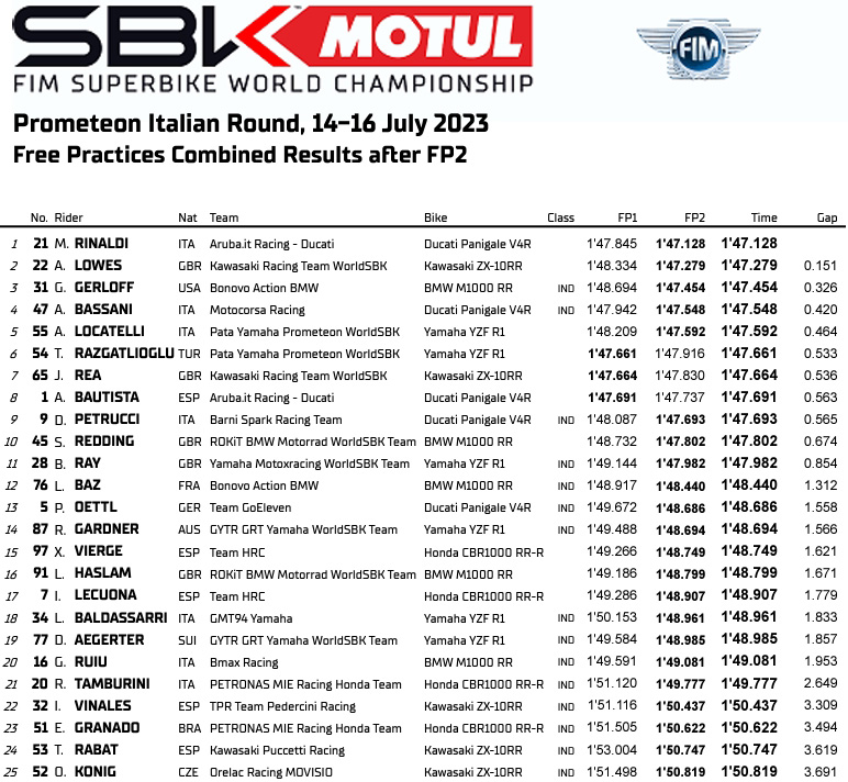 Dans la foulée, Toprak Razgatlioğlu lui subtilise cette position mais c’est Alex Lowes qui inscrit alors le meilleur temps en 1’47.279. Les mesures prises pour équilibrer les forces semblent porter leurs fruits dès Imola…