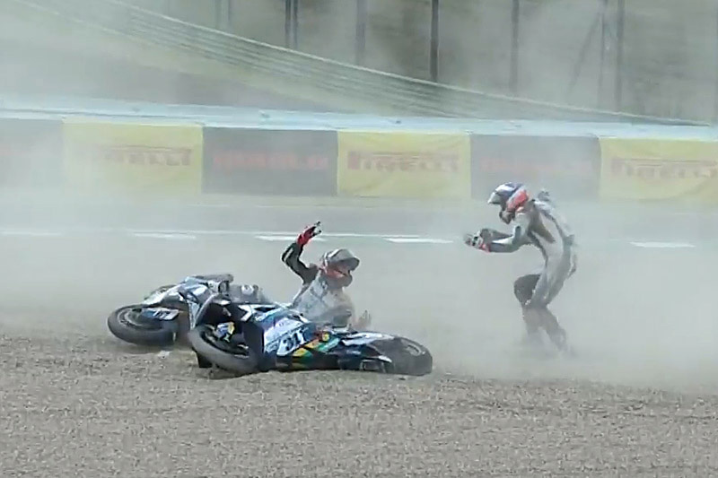 Le tour de sortie est marqué par l’accrochage entre Garrett Gerloff (Bonovo Action BMW) et son coéquipier Loris Baz, le pilote américain perdant le contrôle de sa BMW en essayant de doubler celle du Français avant d’emmener celui-ci au sol. Pas de bobo mais une grosse frustration devant la malchance qui s’acharne…