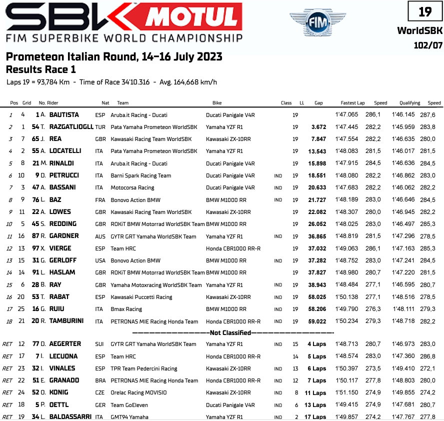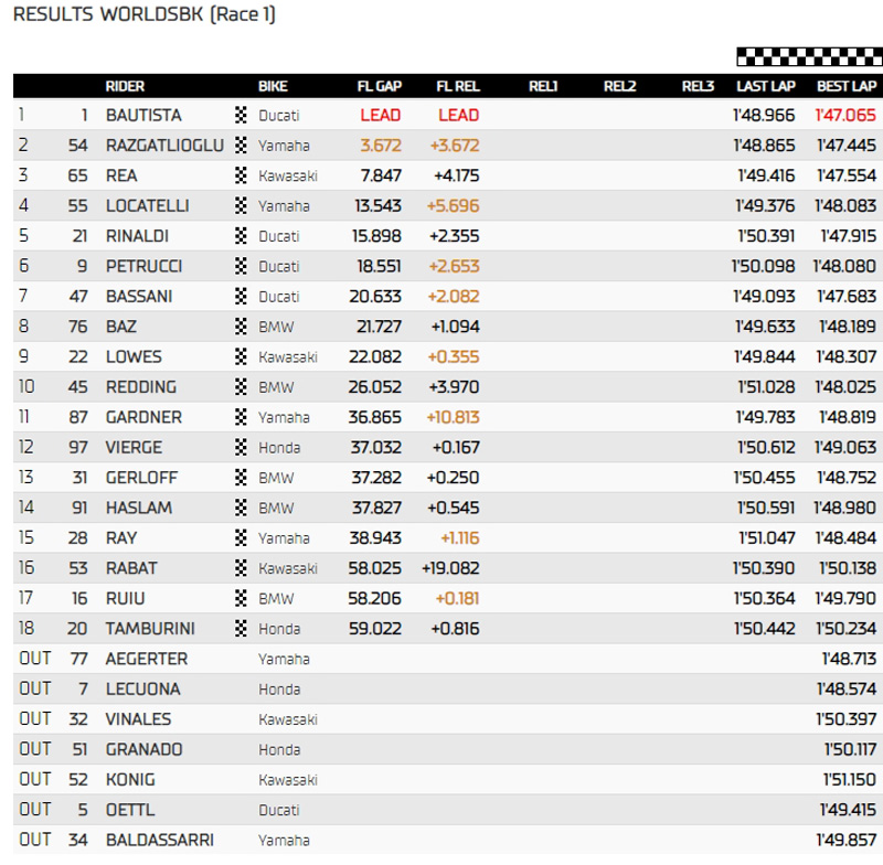 Résultats de la Course-1 des Superbike à Imola :