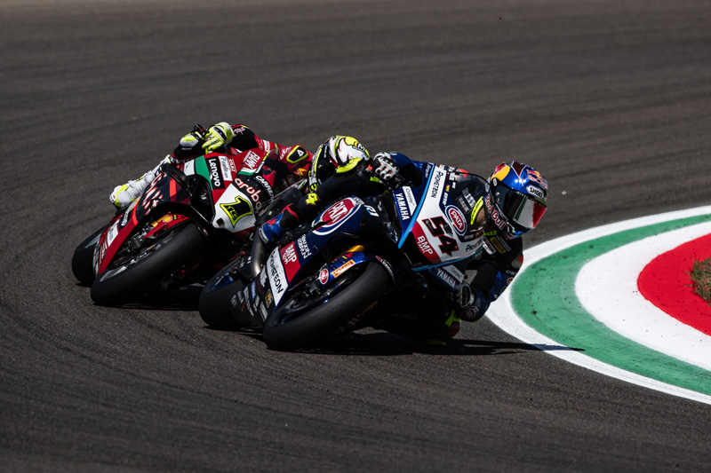• La course 2, sur les conseils du directeur médical et avec l’accord des pilotes, a été réduite à 15 tours au lieu des 19 initialement prévus en raison de la chaleur excessive. En ce qui concerne le choix des gommes, les pilotes ont confirmé pour l’essentiel celles déjà utilisées samedi dans la course 1, à savoir le pneu de développement standard SCX ou le SCX B0800 à l’arrière et principalement le SC1 standard à l’avant. Toprak Razgatlioğlu et Axel Bassani (Motocorsa Racing) ont été les protagonistes incontestés de la course, déclenchant un fantastique face-à-face, remporté par le pilote Yamaha turc à la fin. Bassani a une fois de plus confirmé son statut de meilleur pilote privé. La troisième place est revenue à Jonathan Rea (Kawasaki Racing Team WorldSBK), Álvaro Bautista ayant été contraint à l’abandon après avoir chuté dès le premier tour.