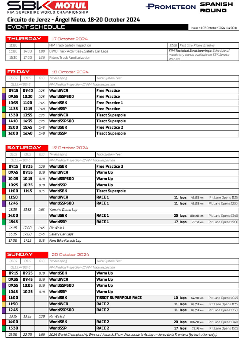 Le circuit implanté en Andalousie se nomme officiellement Circuito de jerez-Ángel Nieto et Toprak Razgatlioglu (ROKiT BMW Motorrad WorldSBK Team) y arrive en tant que leader du championnat avec 473 points, soit 46 points d’avance sur son plus proche rival, Nicolo Bulega (Aruba.it Racing – Ducati) qui a 427 points.