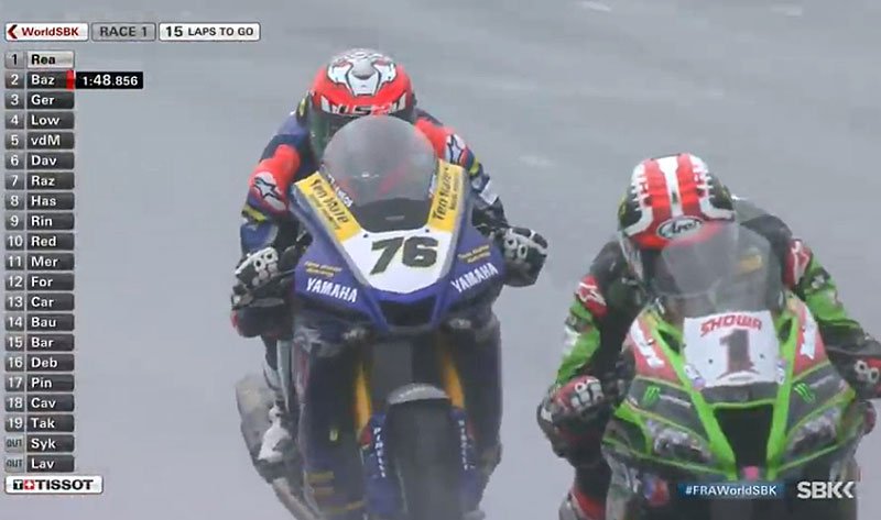 Jonathan Rea tourne comme un métronome et Loris Baz a du mal à suivre. Au 14e tour, le Français perd une seconde d’un coup pendant que, plus loin dans le peloton, Michael Van Der Mark part à la faute sans gravité.