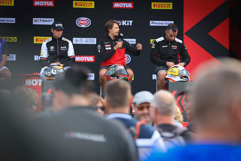 Pour la 9e de ses 12 manches, le championnat du monde WorldSBK Superbike est de retour sur le circuit de Nevers Magny-Cours, et avec lui les traditionnels débriefings du jeudi. Les sujets brûlants ne manquaient pas, avec toutes les grandes nouvelles de la pause estivale, le tour d’horizon de la manche française et les perspectives d’avenir.