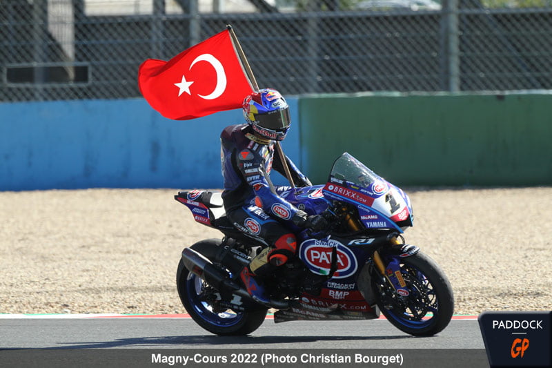 Toprak Razgatlioğlu : « Hier; j’ai été très malchanceux, mais aujourd’hui ici nous avons été très forts. Nous avons gagné la Superpole et la Course 2, et c’est important pour moi, parce que nous prenons de très gros points. Je suis très heureux, c’est mon circuit préféré et normalement mon rêve était de gagner trois fois ce week-end, mais hier je n’ai pas eu de chance. Aujourd’hui nous avons changé tout le système de freinage et je me sens beaucoup mieux. Nous avons aussi amélioré la moto et je continue à me battre pour la victoire. J’ai vu Rinaldi pendant les 10 derniers tours. Je l’ai regardé et il a commencé à glisser avec le pneu arrière, alors je me suis dit « ok, maintenant je le dépasse et j’essaie d’avoir un bon rythme ». Parfois, c’est une bonne planification en course ! Mais nous gagnons à nouveau et je suis heureux.