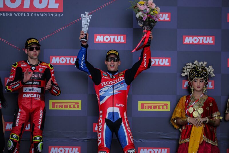 Devant Michael Rinaldi lors de la Superpole Race, Xavi Vierge a su se donner beaucoup de confiance avant d’entamer l’ultime joute sur l’asphalte de Mandalika. Lors des essais, il s’était avéré que la Honda marchait correctement avec des pneus usés. Ceci ne manqua pas de se vérifier lors de la représentation officielle, achevée en troisième position après une erreur de Michael Rinaldi (Aruba.it Racing Ducati) au virage n°10 : « C’est vrai que Rinaldi est parti large, mais nous étions aussi à la limite avec nos pneus et nous n’avons pas fait d’erreur. Ce podium est notre récompense. Nous nous améliorons course après course et nous allons maintenant faire de notre mieux pour continuer sur cette voie lors des prochaines manches ».