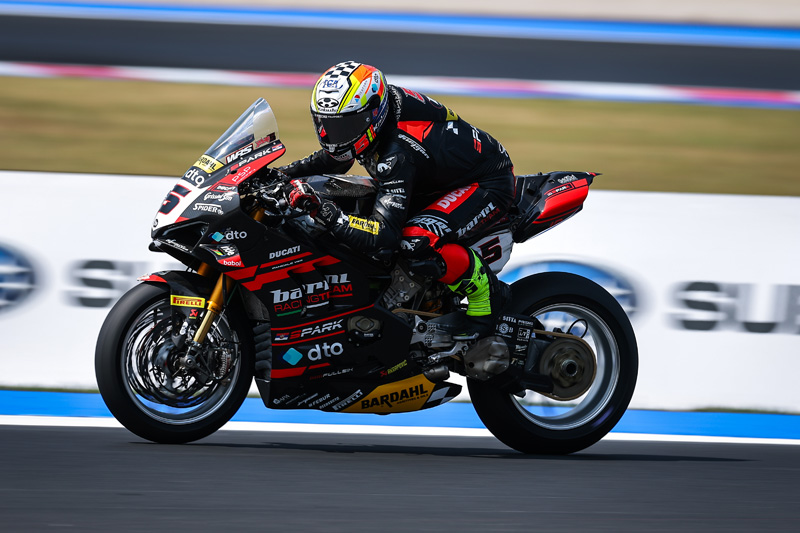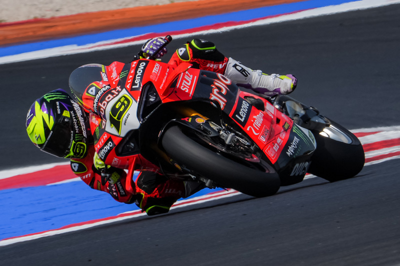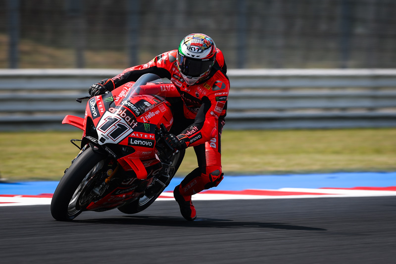 Le week-end commence bien pour Ducati, à domicile. Álvaro Bautista complète le top 3 malgré des difficultés d’adhérence à l’avant sous la chaleur. Il a également réalisé un long relais utile pour préparer les courses. Les Ducati privées du Barni Spark Racing Team, pilotées par Yari Montella (4e) et Danilo Petrucci (6e), se montrent également compétitives.